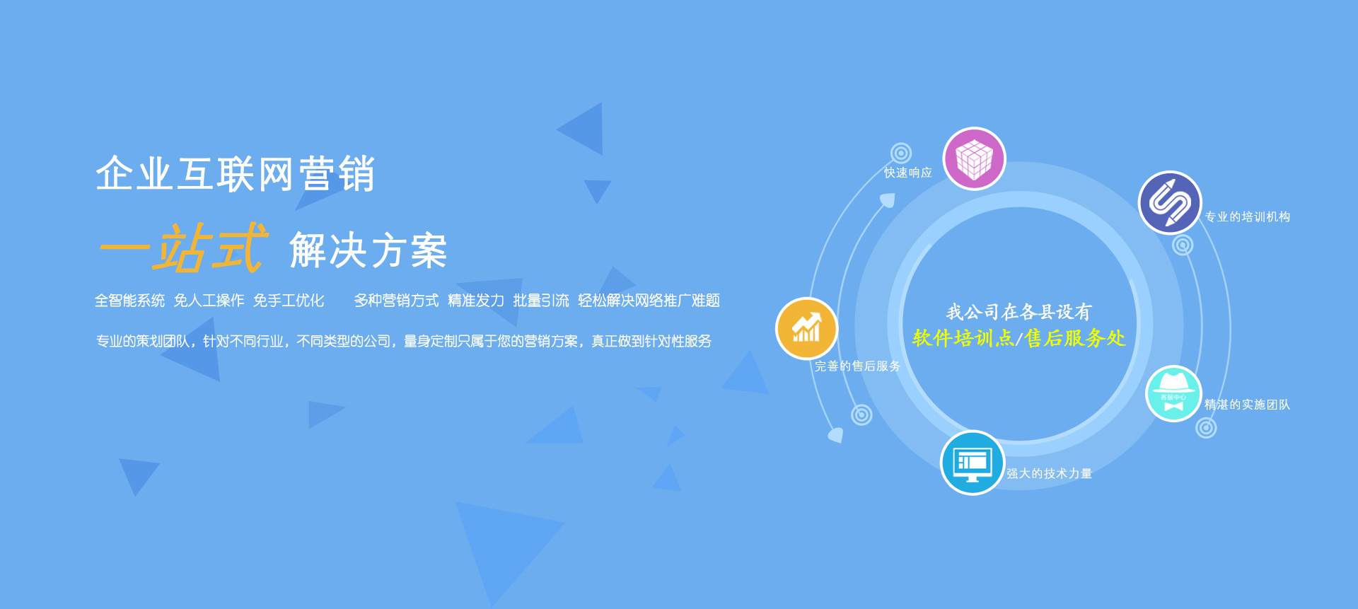 我公司在各縣設(shè)有軟件培訓(xùn)點(diǎn)和售后服務(wù)處。本公司有專業(yè)的培訓(xùn)機(jī)構(gòu)、精湛的實(shí)施團(tuán)隊(duì)、強(qiáng)大的技術(shù)力量、完善的售后服務(wù)。承諾:“快速響應(yīng),隨叫隨到”。絕不會(huì)因我們的原因影響會(huì)計(jì)人員的結(jié)賬、報(bào)表等工作。